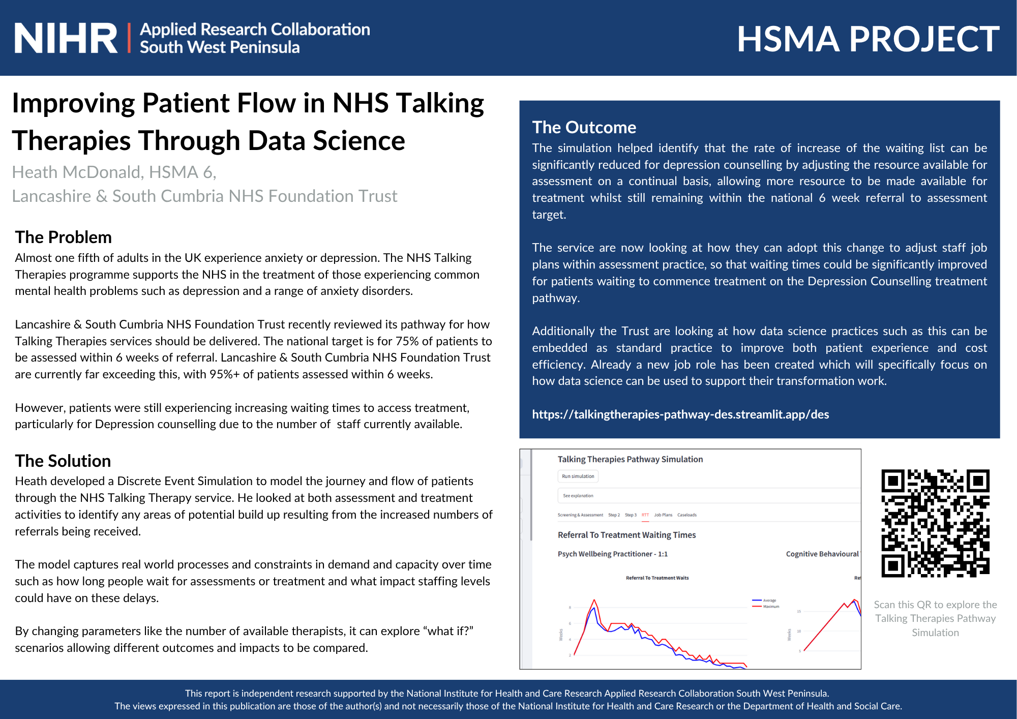 Read about our latest HSMA success story - where savings of up to £2 million have been identified via the use of a simulation model built by a member of our HSMA 6 cohort - on the PenARC blog.