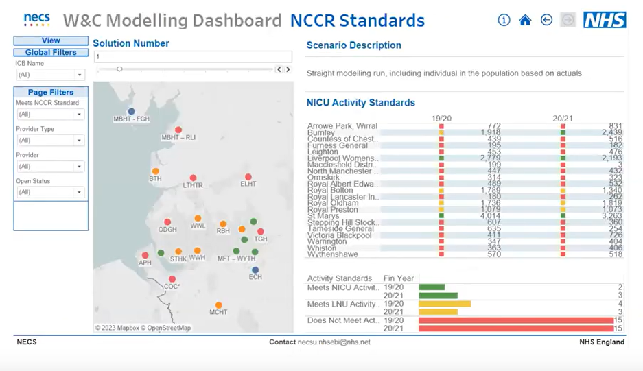 This was then built into a discrete event simulation model and a dashboard, allowing a range of scenarios to be explored by stakeholders.